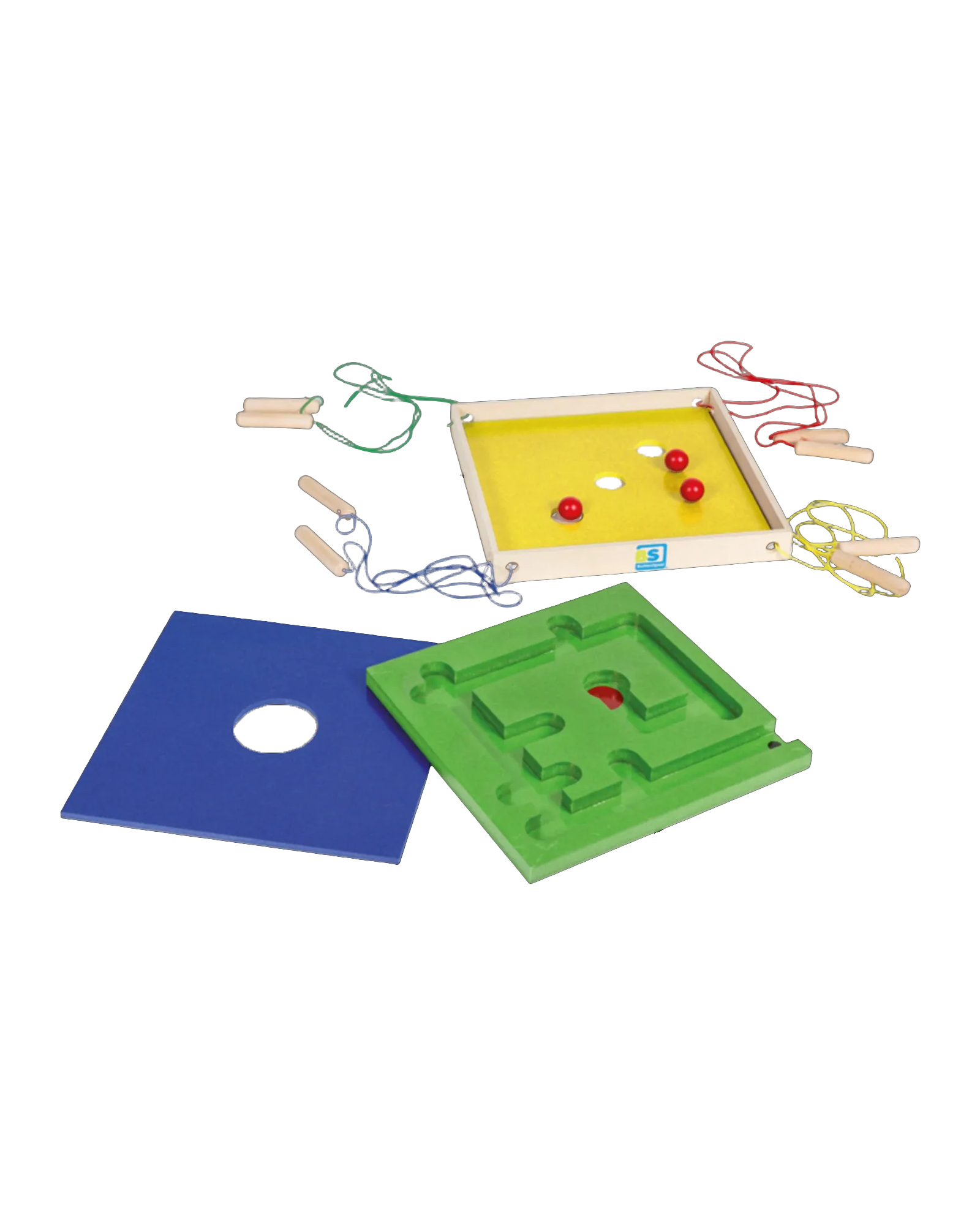 - Included: Game Frame, Interchangeable Boards (Maze & Holes), Balls, Ropes. 📦