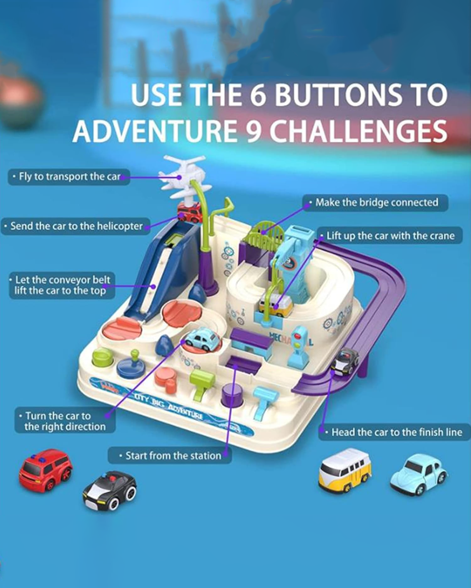 Meet the ultimate battery-free City Car Adventure! Your child uses 6 interactive buttons and levers to guide 5 mini cars through 9 thrilling mechanical challenges. It’s a brilliant way to teach cause-and-effect while boosting fine motor skills and hand-eye coordination.