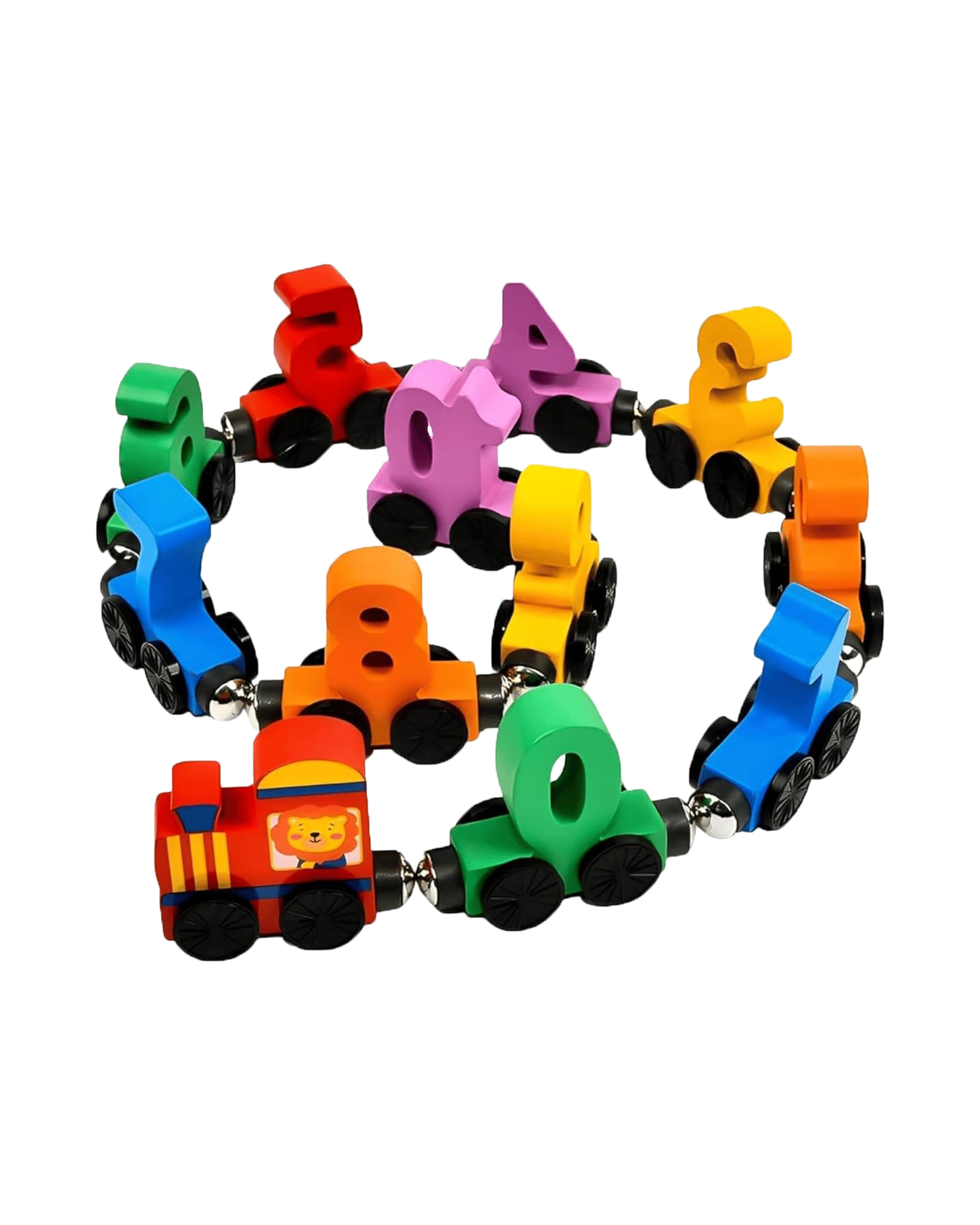 - 5️⃣ قطار الأرقام المغناطيسي (Magnetic Digital Train): قطر خشبي ممتع كل عربية فيه شايلة رقم. بيساعد الطفل يحفظ شكل الأرقام وترتيبها التسلسلي (1, 2, 3..) وهو بيلعب. 🚂🔢