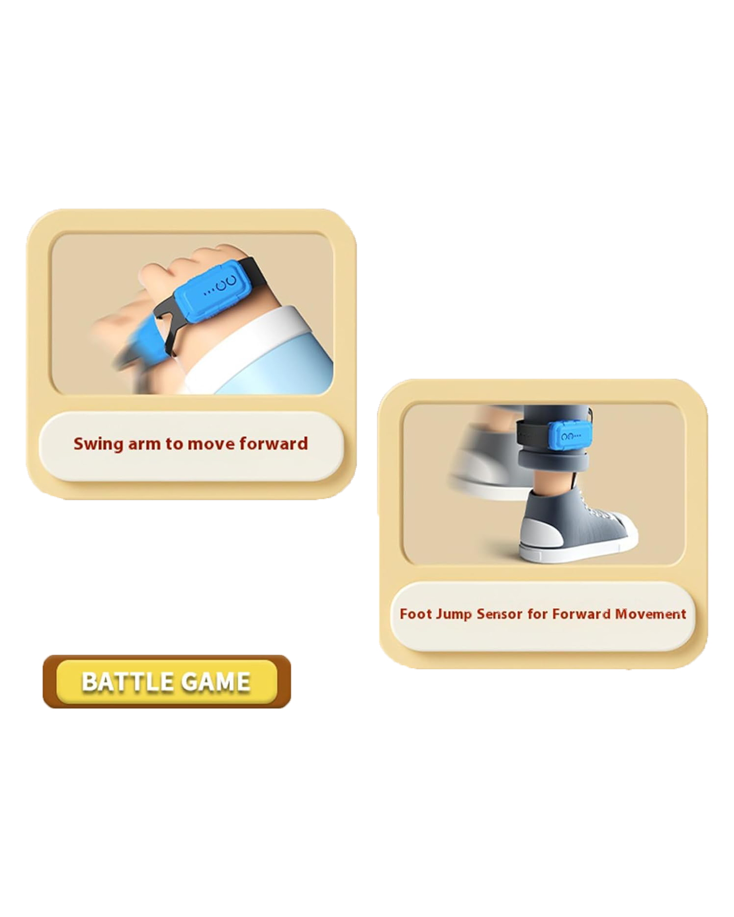 اللعبة دي هتقلب البيت لـ "ماراثون" رياضي! طفلك بيلبس السوار الذكي في إيده أو رجله، وكل ما يحرك إيده أسرع أو ينط لفوق، اللاعب بتاعه بيجري أسرع على المسار! تحدي حركي رهيب (2 لاعبين) بيفرغ طاقتهم، بيقوي لياقتهم البدنية، وبيبعدهم تماماً عن قعدة الموبايلات.