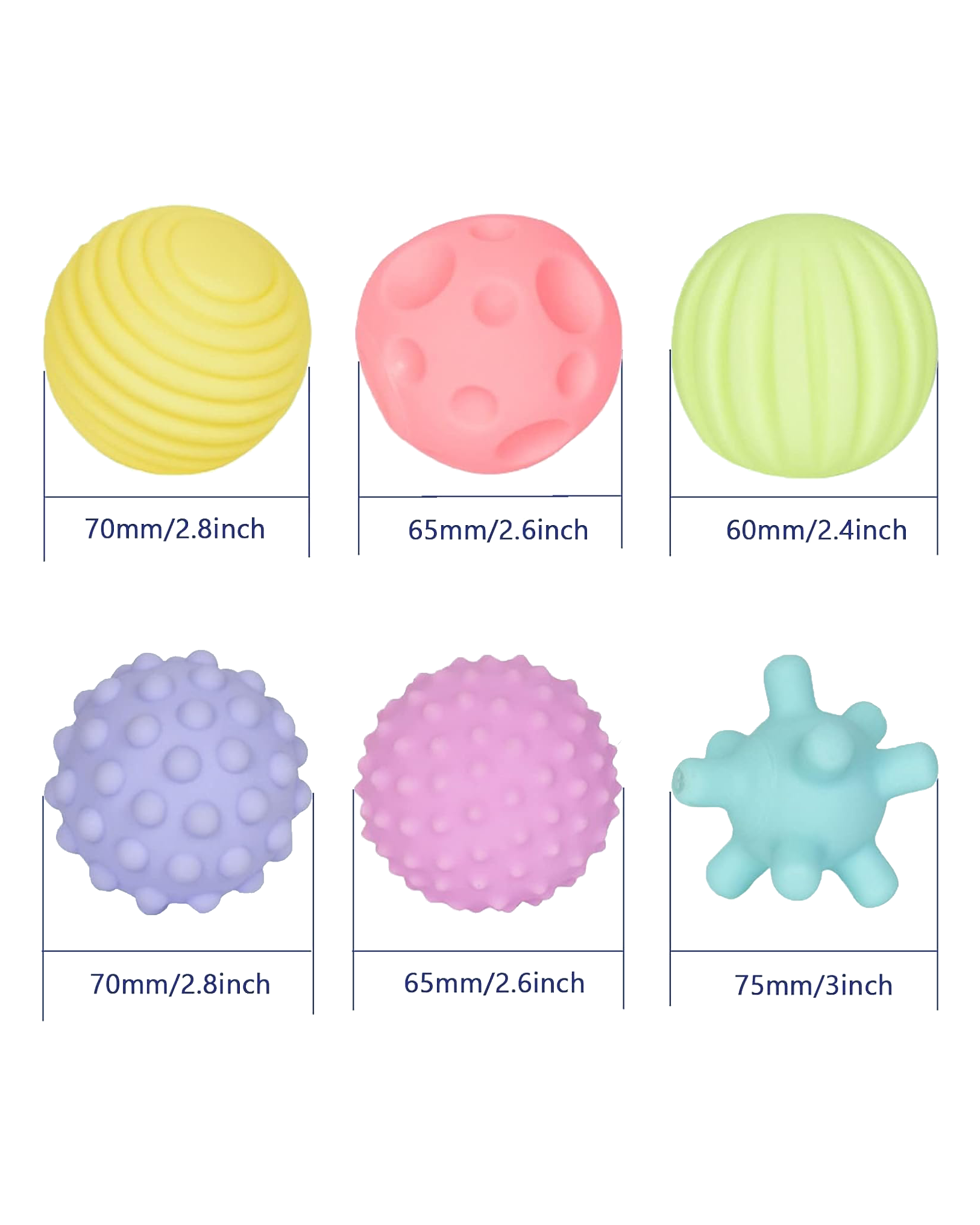 - Includes: Set of multi-textured, colorful sensory balls.