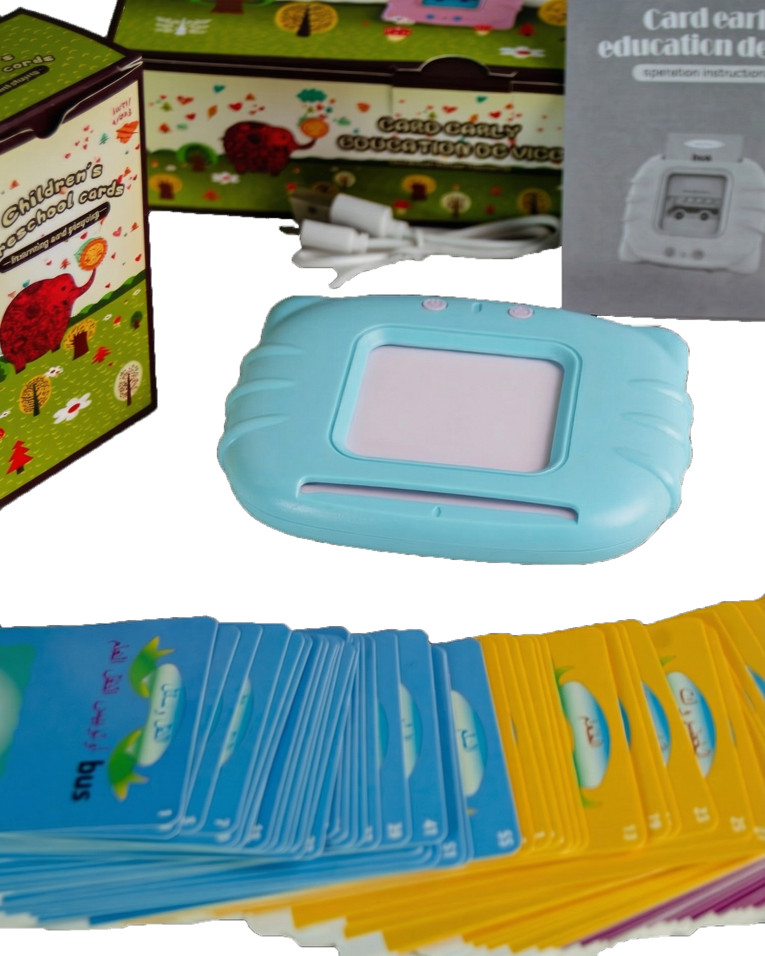 - 3️⃣ قارئ الكروت التعليمية (Flash Card Reader): المعلم الناطق لطفلك! جهاز بييجي معاه كروت، أول ما الطفل يدخل الكارت، الجهاز بينطق اسم الشكل (حيوانات، فواكه، مواصلات). 🗣️📚