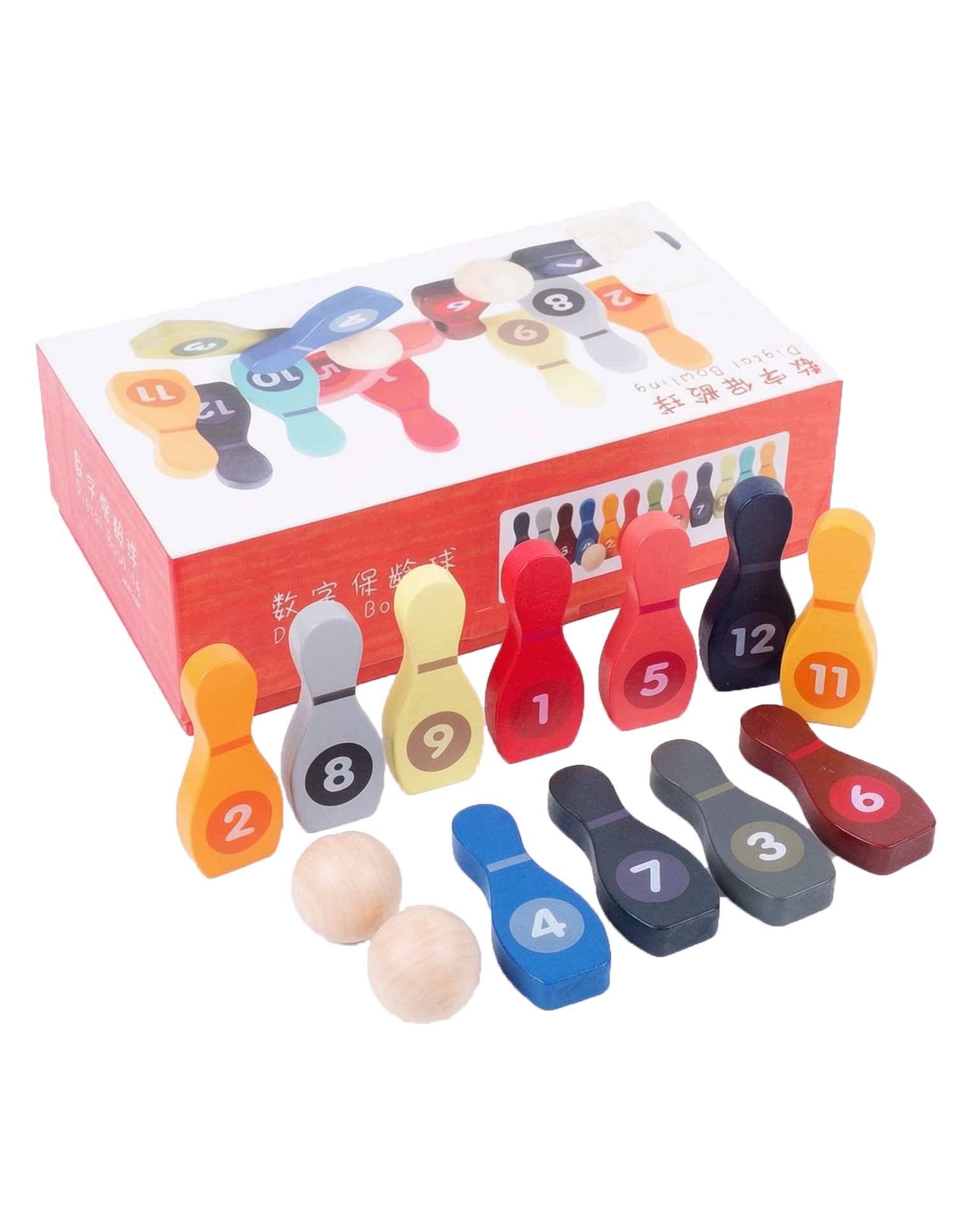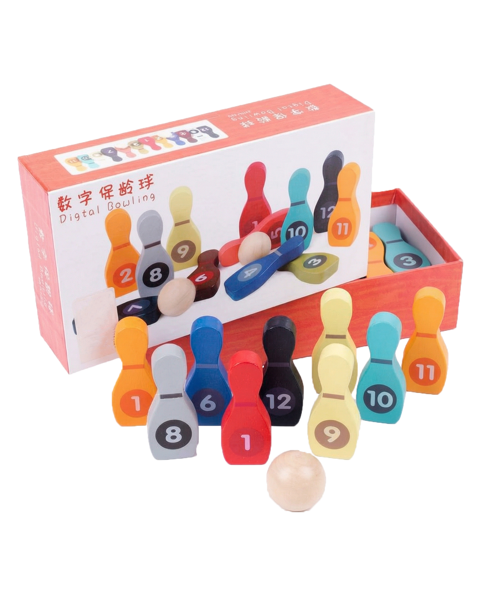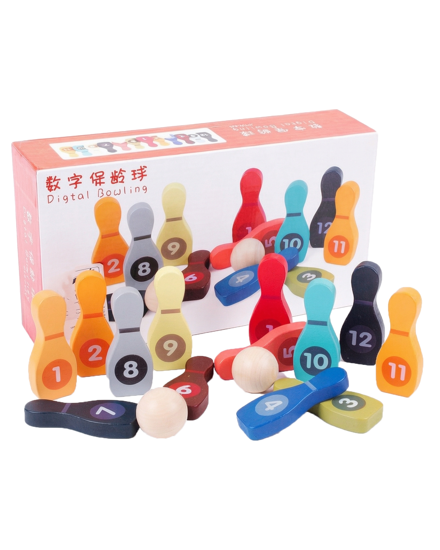 Get active and learn math at the same time with the **Wooden Digital Bowling Set**! This timeless toy is perfect for indoor or outdoor fun. 🔢✨