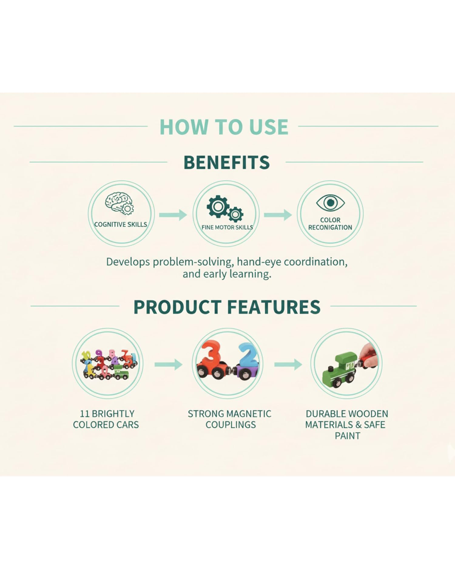- 11-Piece Set: Includes 1 Engine and 10 Number Cars (0-9) to teach counting and number order. 🔢